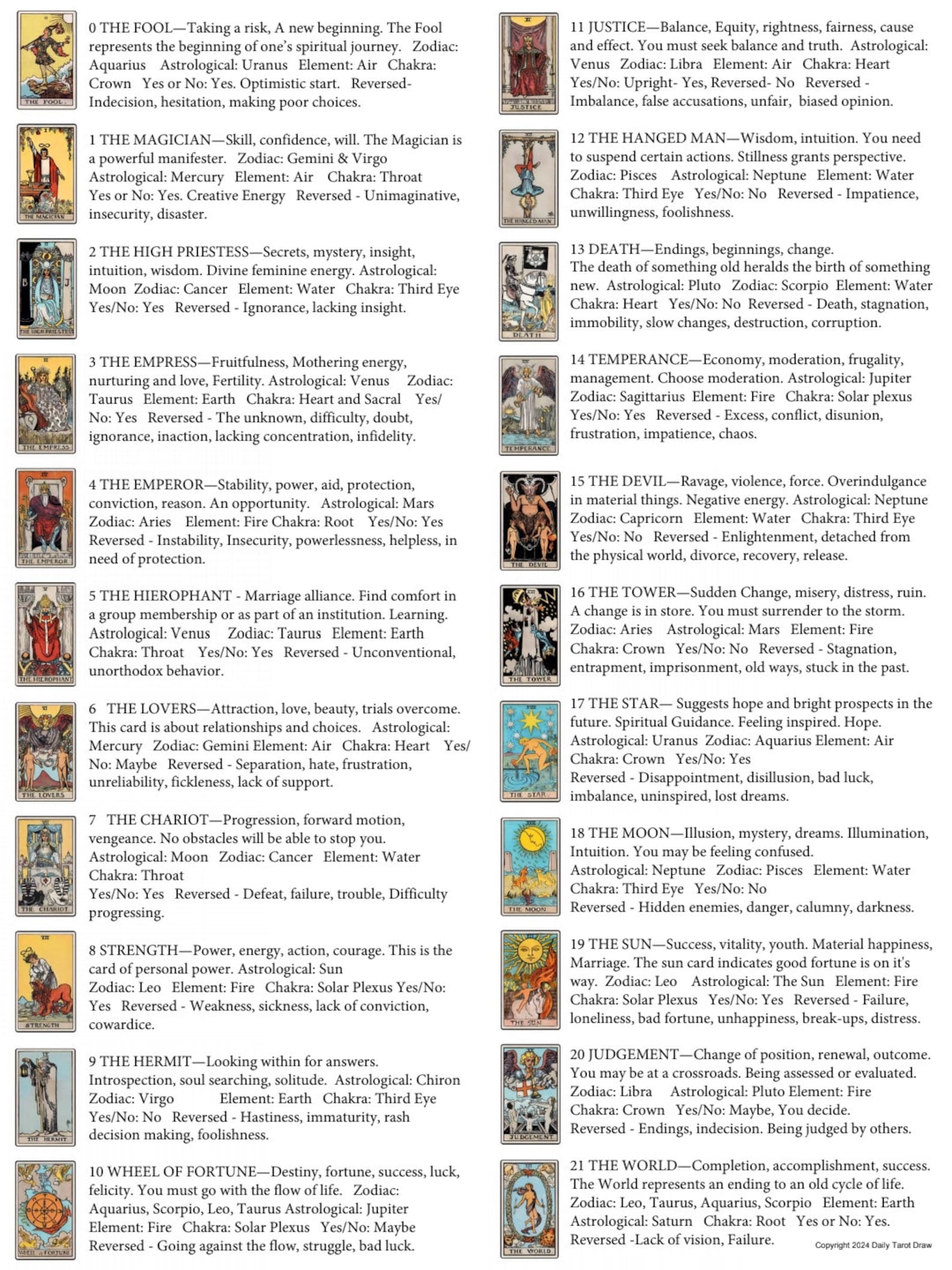 Tarot Cheat Sheet